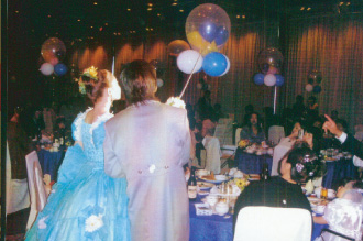 キャンドルサービスのように、お二人がトーチを使って各卓を回り、浮かんだバルーンを スパークしていく演出です。