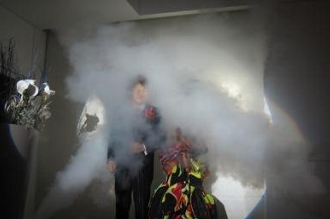 炭酸ガスの白煙を高圧のボンベからリモートコントロールにより噴射さ せます。