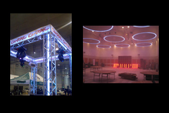 トラスのほかにもバルーンや既存のものをライトアップすることでいつもとは違う会場作が可能です。