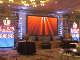 LEDスクリーンは、ユニット640×480を増設・組み合わせることによって様々なレイアウトができ、プロジェクターでスクリーンに映像を投影していたものを当社のLEDスクリーンを使うことにより、プロジェクターでは不可能だった演出が可能になります。