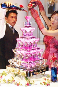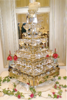 シャンパン・タワーとは、シャンパン・グラスをタワーのように積み上げいき、頂上からシャンパンを注ぐことです。