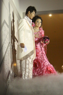おふたりの登場を幻想的に演出してくれるドライアイス。