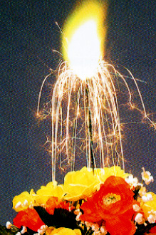 下から吹き上げる花火です。比較的煙が少なく、低温花火なので室内での使用が可能です。また、上からつるしてナイアガラ花火としても使用可能です。