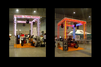 トラスのほかにもバルーンや既存のものをライトアップすることでいつもとは違う会場作が可能です。