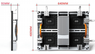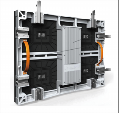 LEDスクリーンP16。ユニット1枚(640x480)の重さも13kgと軽量でフレーム連結も簡単。
