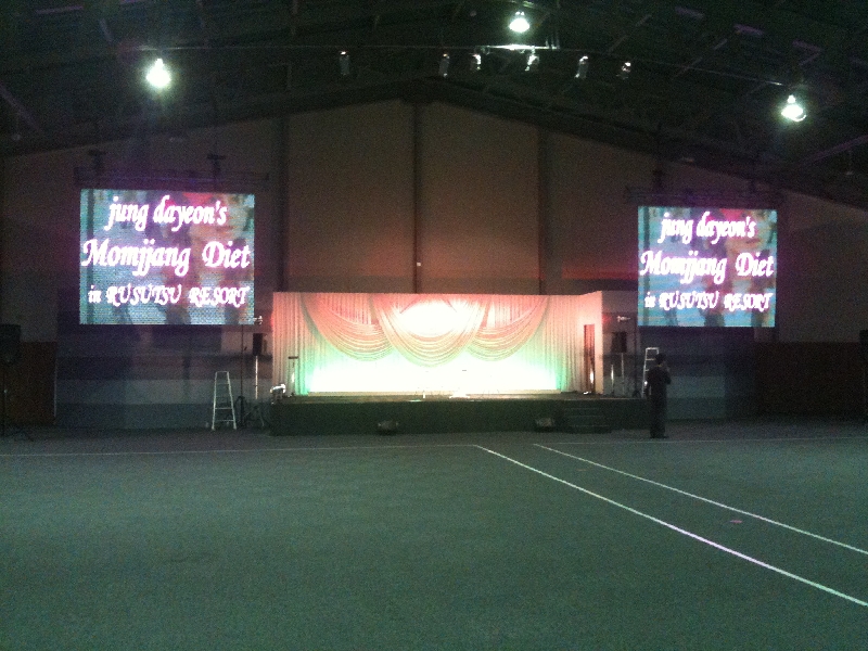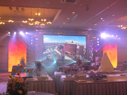 LEDスクリーンは、ユニット640×480を増設・組み合わせることによって様々なレイアウトができ、プロジェクターでスクリーンに映像を投影していたものを当社のLEDスクリーンを使うことにより、プロジェクターでは不可能だった演出が可能になります。