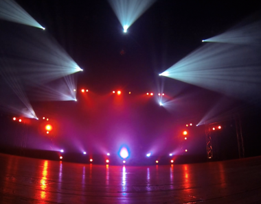 激しいサウンドの中を走りぬけるスポットライト。ゆるやかなメロディーとともにふりそそぐ日差しのようなライト。
