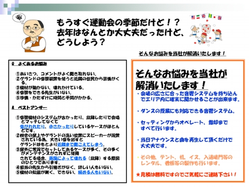 各イベントの進行に沿ったサウンドの演出もスタッフが担当致します。![]()